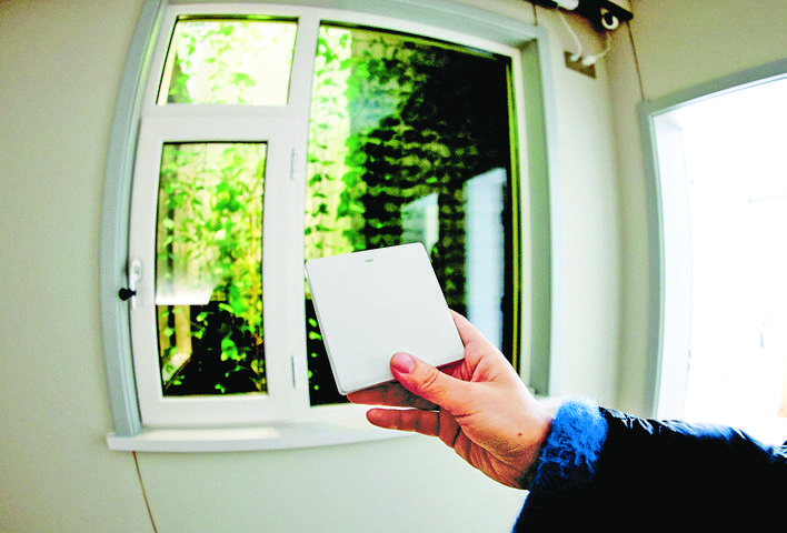 “这个开关是智能移动开关,通过模块感应实现控制。”草千里介绍,在天井里的射灯一头安装模块,并和开关配对设置好。这样,拿着开关可以在房间的任何一个位置控制天井里的灯光。