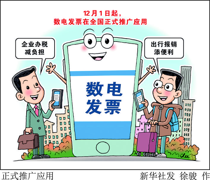 ▲数电发票,就是全面数字化的电子发票。12月1日起,数电发票在全国正式推广应用。 数电发票的推广应用,不仅大大减轻了企业办税负担,也让人们日常出行和报销更加便利。新华社发 徐骏 作