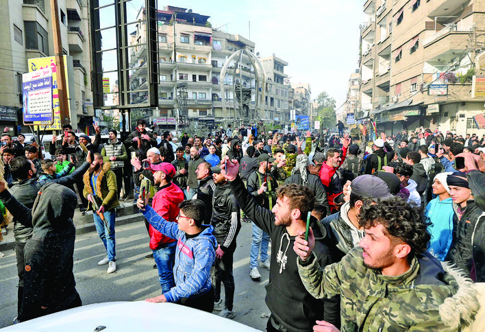12月8日,当地民众聚集在叙利亚大马士革街头。 新华社发