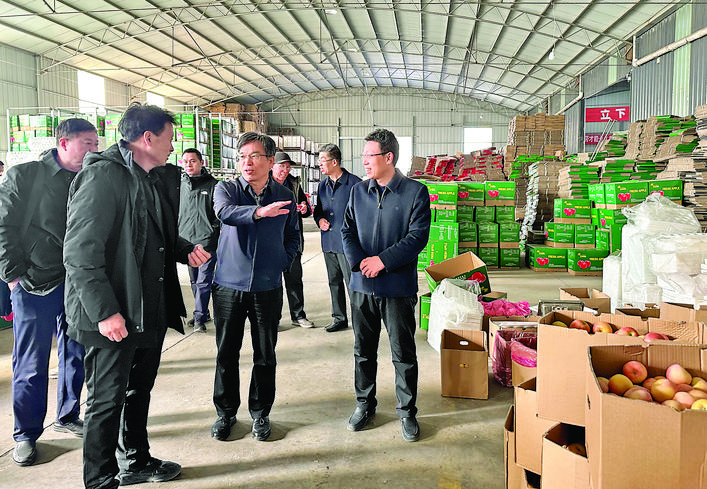 随后,大家参观了张安康负责的跃飞果品进出口有限公司。车间里,从撕苹果膜袋,到清洗、分选、套网袋、贴标签、有序装箱……工人们熟练地忙活着。大家充分了解了苹果收购储存、出口贸易、村民就业等情况,正如这扑面而来的热火朝天干劲儿一般,大家看到了张安康带领村民共同致富的源源不断的内生力量。