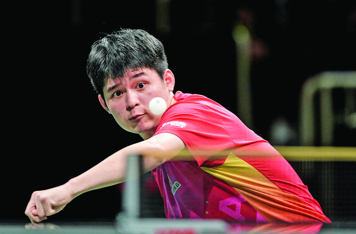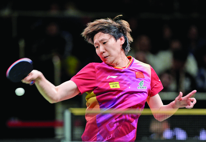 ▲12月8日,中国队选手王曼昱在女单比赛中回球。最终,她3比0战胜韩国队选手金娜英。