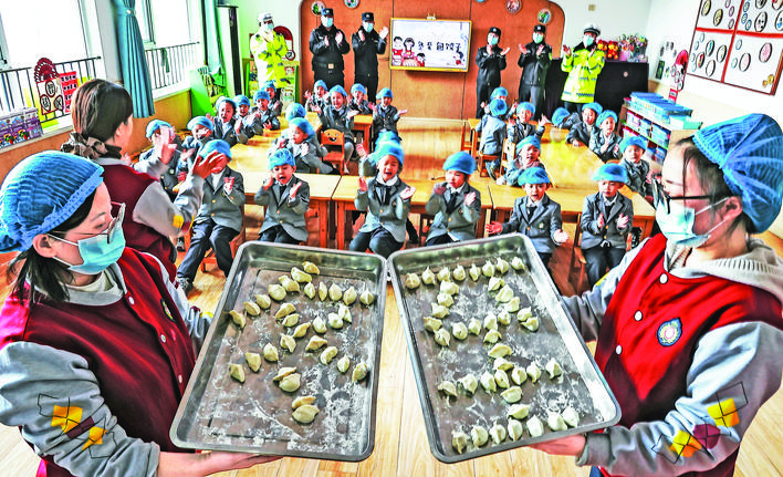 ▲12月20日,新绛县公安机关开展“‘警’彩冬至进万家”活动。龙兴派出所民辅警走进龙湖幼儿园,为小朋友宣传防骗防拐和交通安全出行常识,同小朋友一起包饺子、唱冬至歌谣。