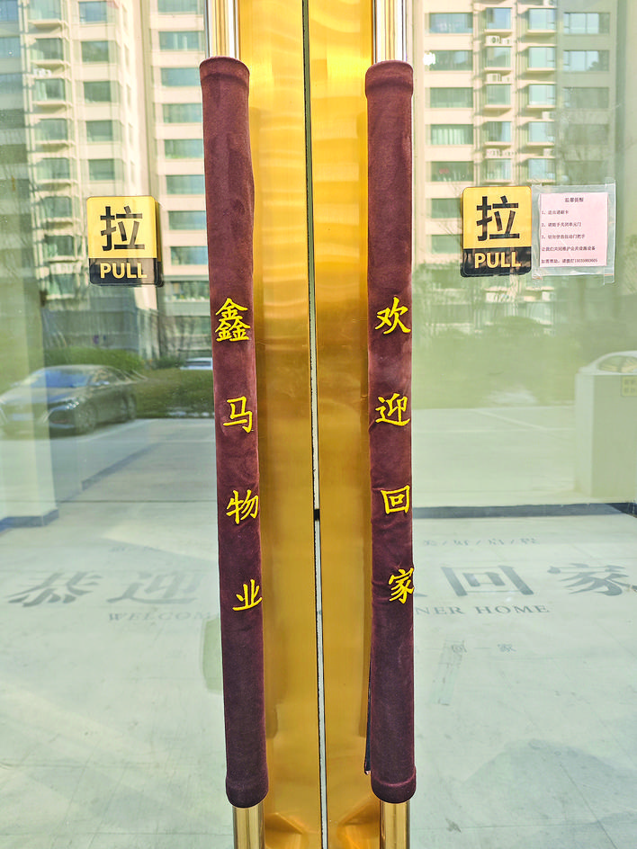 张梅介绍,目前,前三批成功选房的保障家庭已陆续接房,已入住100余户,其余业主正在抓紧时间装修。冬季天气寒冷,各单元楼的楼宇门把手十分冰凉。考虑到这一点,物业工作人员为这些门把手“穿上了衣服”,让业主开关门时更舒服。年关将至,物业工作人员已经帮业主把地毯清洗干净,接下来准备在小区里挂上各种新年装饰,营造浓浓的过年氛围。