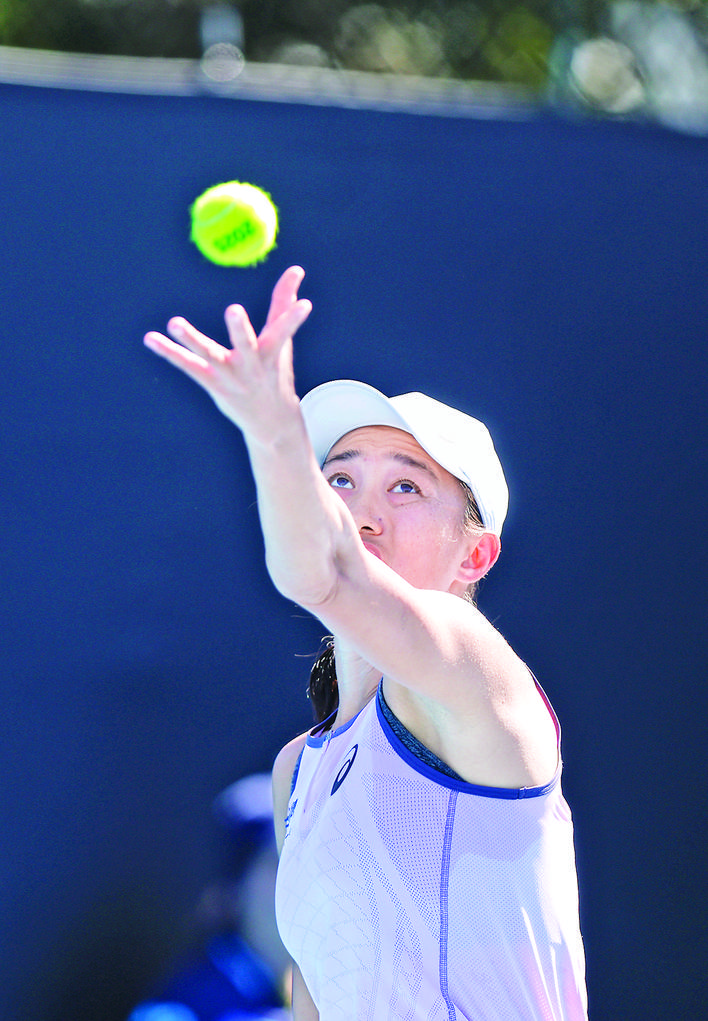 ▲1月14日,张帅在比赛中发球。当日,在墨尔本进行的2025年澳大利亚网球公开赛女单首轮比赛中,中国选手张帅2比0战胜美国选手凯斯勒,晋级下一轮。 新华社记者 马平 摄