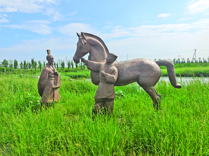 ◀河东成语典故园“伯乐一顾”雕塑