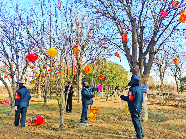 过了腊八就是年。春节脚步日渐临近,中心城区的年味儿也越来越浓。这几天,市城市管理局相关工作人员正忙着为公园广场及各街道的树木和绿地挂上彩灯和装饰,通过亮化、美化的方式营造浓浓的节日氛围。