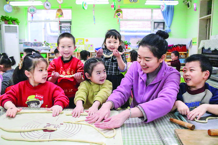 ▲近日,闻喜县苗圃幼儿园组织开展了别开生面的年俗活动“捏花馍 搓麻花”。小朋友们个个挽起袖子,揉一揉、团一团、搓一搓、扭一扭,在亲身体验和实践中感受中华传统文化的魅力。