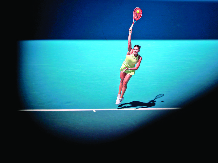 ▲1月16日,纳瓦罗在比赛中发球。当日,在墨尔本进行的2025年澳大利亚网球公开赛女单第二轮比赛中,中国选手王曦雨1比2不敌美国选手纳瓦罗,无缘下一轮。