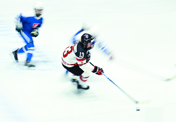 ▶1月15日,加拿大队球员斯考特·沃特金斯·索思沃德在比赛中带球进攻。当日,在2025年都灵大冬会女子冰球预赛中,加拿大队6比2战胜斯洛伐克队。新华社记者 贺灿铃 摄