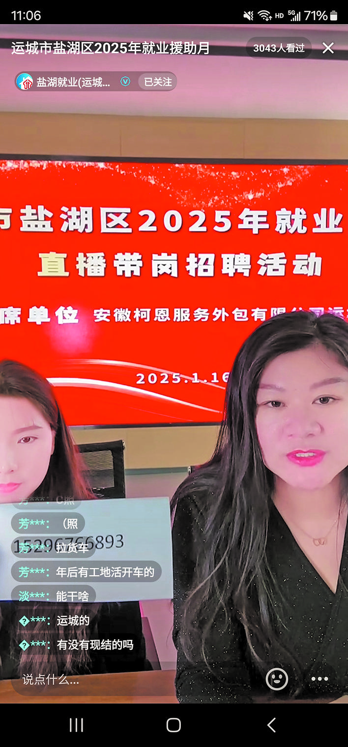 盐湖区就业服务中心通过“盐湖就业(运城零工市场)”抖音号开展直播带岗,该账号已有1.1万余名粉丝,有效提升了就业公共服务的质量,让零工等各类求职群体足不出户即可线上找活、对接企业。