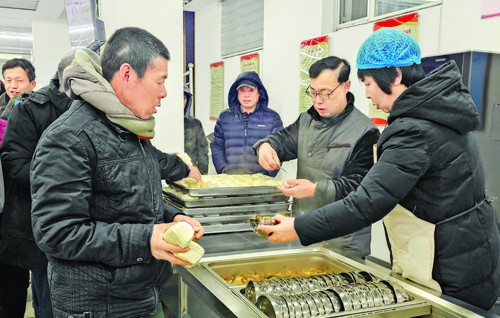 就餐处,热腾腾的烩菜、馒头、米粥,以及暖心饮料已备好,正有序分发给零工。免费的热乎早餐,驱散了萦绕周身的寒意,让大家身心皆暖。