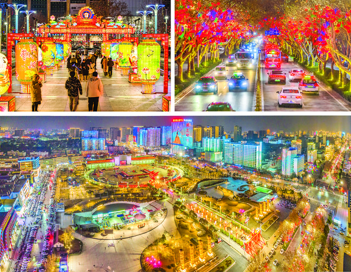 ▶春节临近,我市中心城区河东街、红旗街等主要街道,以及南风广场、禹都公园等场所,造型各异、色彩斑斓的花灯齐放,营造出喜庆的节日氛围。
