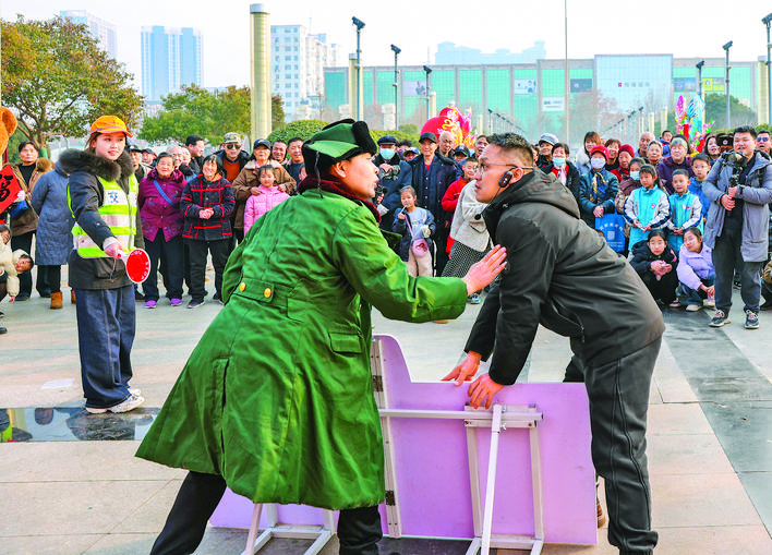 “我打竹板说一段,奉劝各位要记牢,劳逸结合别侥幸,疲劳驾驶出人命。合理安排要休息,保持充足的精力。连续驾驶四小时,休息至少二十分……”在年货节的一块空地上,宣传民辅警迅速支起摊,随后他们打起竹板,说起了自编自导的快板书。
