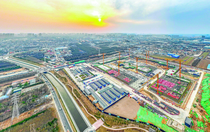 ▲2月18日,运城市人民医院建设项目(一期)工地塔吊林立,一派繁忙景象。 据悉,该项目是省、市重点工程项目之一,总占地面积17.73公顷,建筑面积达27万平方米。 记者 茹雅 摄