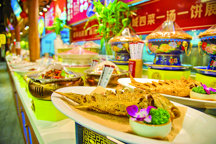 酒香也怕巷子深,宣传推介不可少。据介绍,自2022年我市推出特色系列餐饮“四菜一汤一饼”以来,该店一直坚持做好该品牌美食的宣传推广工作。去年“五一”“国庆”,以及今年春节假期期间,前来店里吃饭的本地和外地顾客络绎不绝。店里仿古的建筑风格、醒目的“四菜一汤一饼”推广灯箱和桌面展示牌、菜单上的“四菜一汤一饼”组合套餐,以及专门的展示档口,都为“四菜一汤一饼”美食品牌的知名度奠定了基础。