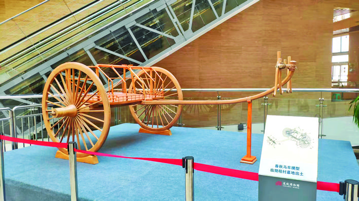 由于造车的最终目的是方便货物运输,奚仲便在两个圆轮的正中间位置又装了一个长木,使其与连接两轮的横木成“十”字交叉,这样一来便可运输少量货物。为了提高货物装载量,奚仲在“十”字上面加装了木板,又在吉光的提议下,在木板两侧装上了围板,车已然初具雏形。(《团结报》)