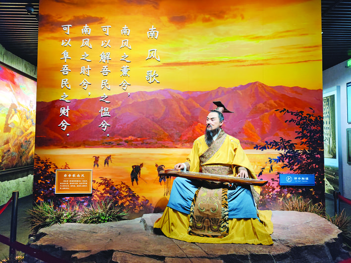 ◀河东池盐博物馆《舜帝歌南风》塑像