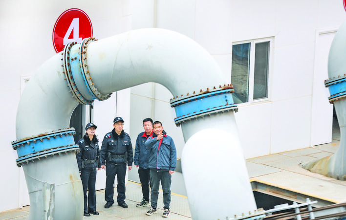 2月19日,在芮城县大禹渡灌区扬水站,南磑派出所民警和该站工作人员,正穿梭在扬水站的各个角落,对机组设备、视频监控、消防器材是否正常运行情况进行了认真细致的检查核实。