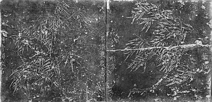 细观碑刻上的画,一根风竹、一根雨竹,两根翠竹拔地而起,雄健挺劲,丛丛竹叶清新俊逸、疏密有致、丰丽滴翠。整个画面构图简练,主题突出。再仔细端详,那在临风摇曳中下垂的簇簇竹叶,竟组成了一个个文字,藏着这首五言诗。