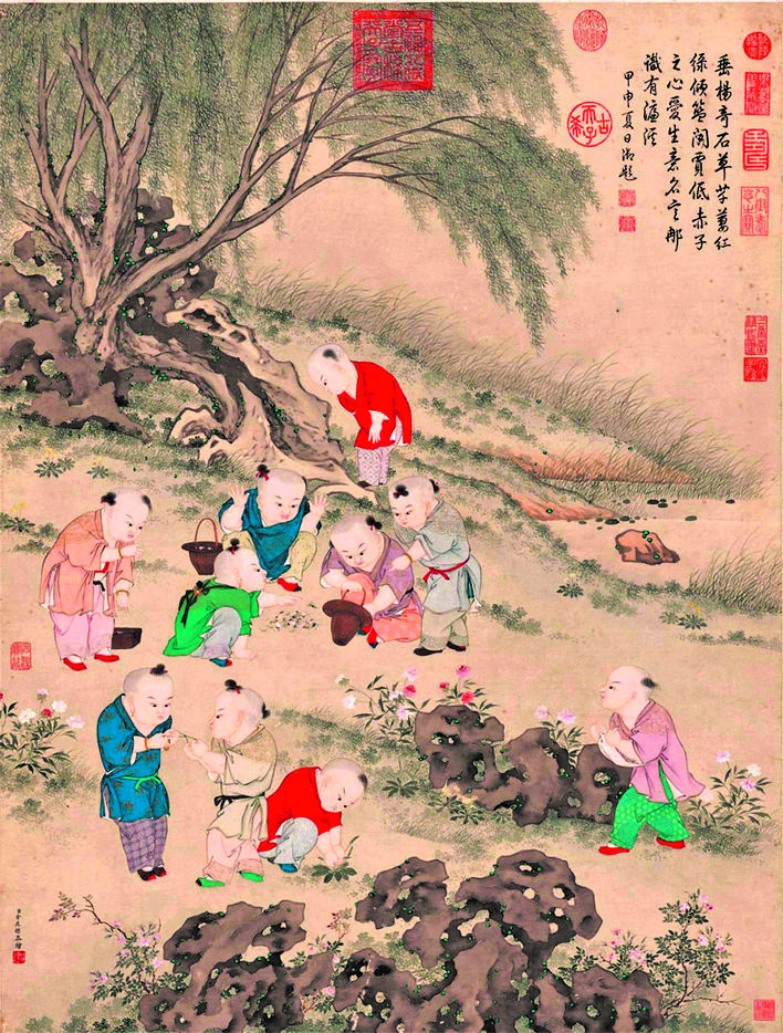 斗花很好理解,就是比谁的奇花更多。《开元天宝遗事》中写道:“长安士女于春时斗花,戴插以奇花,多者为胜。”斗草则复杂一些,分为“文斗”和“武斗”。“文斗”前,古人会先采来众多花草,然后聚在一起以对仗的方式“报花名”,文采最佳者取胜。“武斗”则比草的韧性,比赛双方先各自选择有韧性的草,将其互相交叉,用力拉扯,不断者胜。欧阳修的《渔家傲·三月芳菲看欲暮》中有“宝马绣轩南陌路。竹歌举。踏青斗草人无数”的词句,只是不知他玩的是哪种玩法。