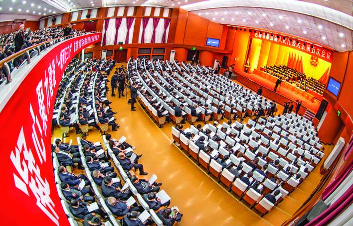 ▲2月24日,运城市第五届人民代表大会第五次会议在盐湖会堂隆重开幕。 记者 薛俊 摄