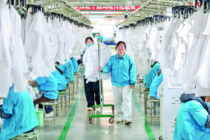 据介绍,自动化生产车间内是该公司新增的3条生产线。“今年要扩大产能,人才需求量大,不仅需要缝纫工、包装工这样的一线生产工人,还需要专业技术人员。”该公司党群人事部部长杜迁英说。