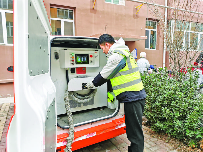 “现在有了移动充电车,给新能源汽车充电就方便了,将车停到单元楼下,只需在微信上打开小程序预约好时间,移动充电车就会上门充电,再不用开车找充电桩了,也省了步行送车、取车的麻烦。”
