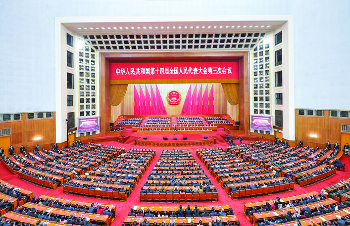 ▲3月11日,第十四届全国人民代表大会第三次会议在北京人民大会堂举行闭幕会。新华社记者 庞兴雷 摄