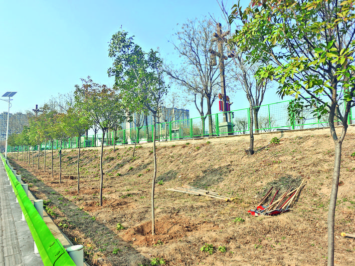 该中心中片区管护部相关负责人欧阳彬介绍:“今天下午共补植补栽了100多棵红叶石楠和樱花树。后续我们还将在桥洞西北角栽植一定数量的丛生紫薇,旨在提升河东池盐博物馆周边的园林绿化景观效果。”