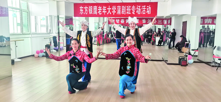东方银鹰老年大学有关负责人表示,除了蒲剧培训班,还设置了声乐、瑜伽、形体走秀、家庭教育等课程,旨在搭建一个学习交流的平台,丰富老年人的精神世界,让“老有所乐、老有所为”照进更多人的现实生活。