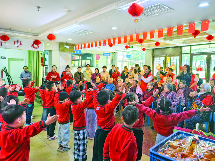 活动中,志愿者一行有的为老人表演文艺节目,有的为老人按摩身体拉家常,还有的为老人发放慰问品……现场气氛融洽,敬老氛围浓厚。