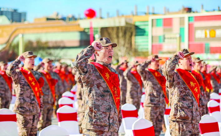 ▲3月18日,入伍新兵在出征仪式上宣誓。