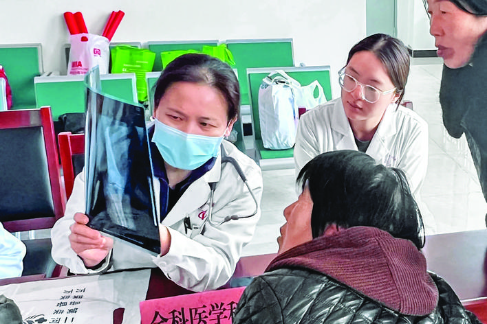 3月13日,市中心医院妇科、乳腺科、心血管内科、神经内科、呼吸与危重症医学科、中医科、全科医学科、超声医学科、内分泌科以及医疗保险科等多个科室的专家组成医疗团队,来到万荣县荣河镇卫生院开展了以“关爱女性健康 义诊温暖基层”为主题的义诊宣教活动(下图)。