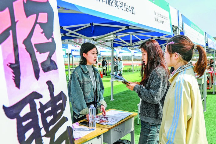 “这个岗位的实践机会多吗,好上手吗?”当天上午,招聘会现场热闹非凡,前来求职的学生三两结伴,穿梭在各用人单位展位之间,有的与招聘人员热情交流,就实践机会、晋升空间、岗位要求等进行了解;有的则围在宣传展架前认真观看,不时与同伴进行交流,寻找着适合自己的工作。值得一提的是,招聘会还吸引了不少大一、大二学生前来“取经”,提前了解招聘市场行情,为未来的职业规划做好充分准备。