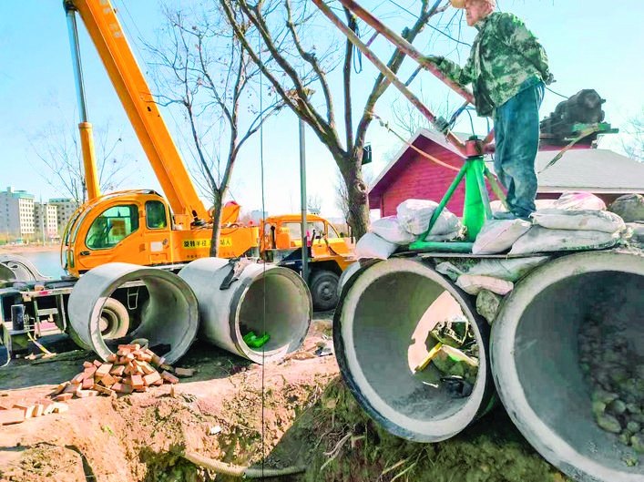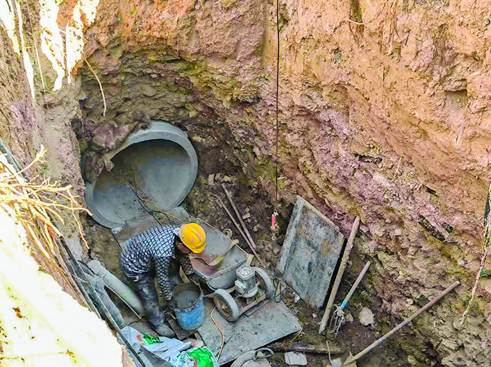 在实施改造前,该中心相关工作人员对铺安街和韩信路交叉口的积水程度和积水原因进行了深入分析研究,并结合道路实际情况,制订了有针对性的改造方案:在该路口新建1道长66米、管径DN1200的钢筋混凝土顶管,提高原有雨水管道的排水能力。
