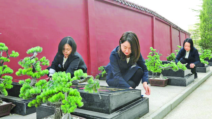 ▶近日,临猗县烈士陵园内,身着素装的该县退役军人事务局干部职工俯身擦拭每一方青灰色墓碑。他们以“代祭表哀思”的特殊方式,传递社会各界对英烈的缅怀之情。