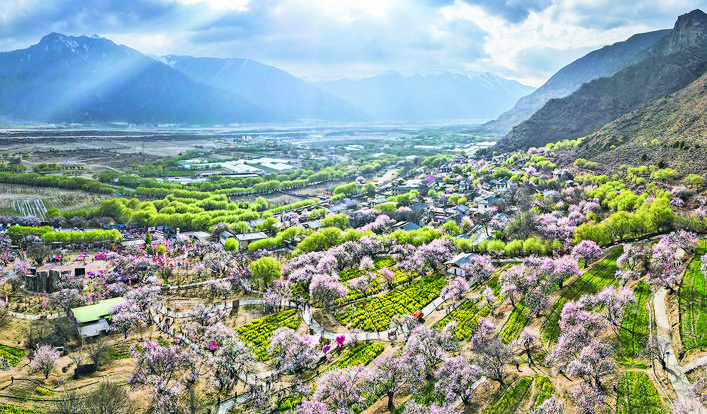 ▶林芝市巴宜区嘎拉村的桃花。 西藏林芝市被誉为“雪域江南”。近日,随着天气回暖,桃花竞相盛开,吸引众多游客前来赏花,感受春天的气息。新华社记者 齐芷玥 摄