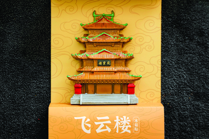 谈起做文创的初衷,闫琳说是因为“爱玩”。平日里,喜欢旅游、热爱文化的闫琳每到一个城市,都会收集当地的冰箱贴、玩偶等文创产品,那些精美的物件也让她爱不释手。一次偶然的机会,她看到应县木塔的纸雕本,就立马想到了家乡的飞云楼。