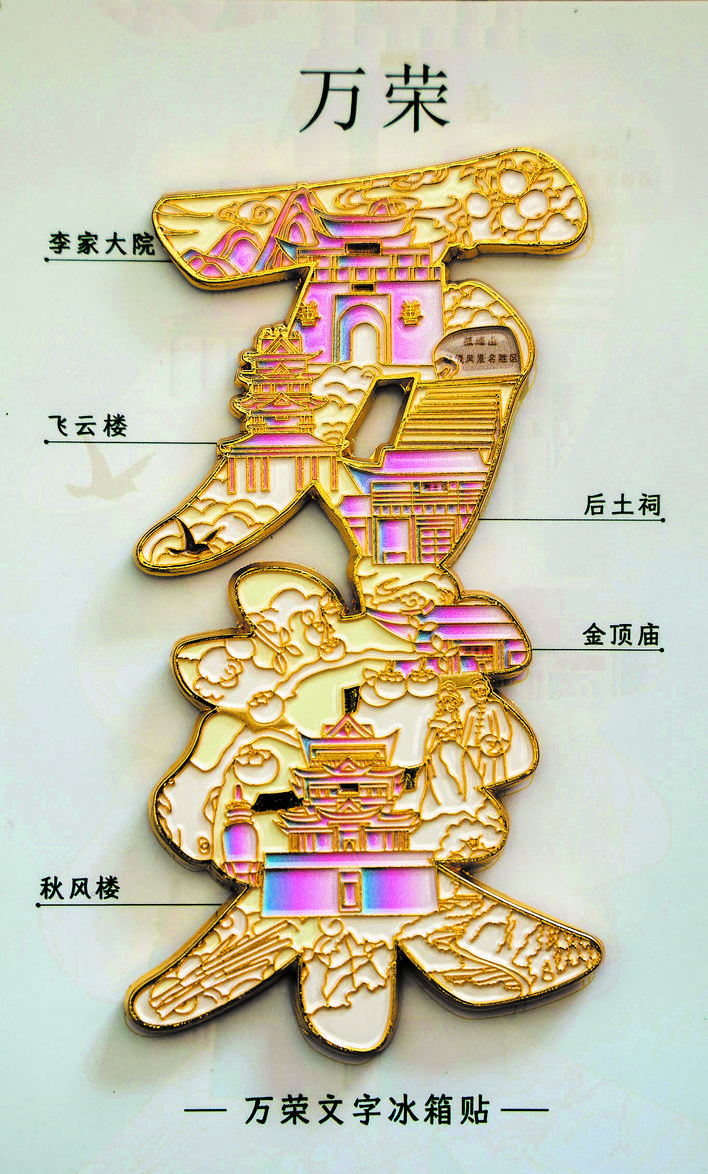 还有以飞云楼的春天为主题的流沙冰箱贴,搭配流沙花瓣,再融入AR技术,一扫就能看到飞云楼的实景动画。独特的设计和新颖的玩法,让这些产品一经推出,便受到大家的喜爱。今年春节在飞云楼前摆摊时,就有回乡大学生专门跑到她们的小摊前,购买了十几份文创产品,要送给朋友们。“我希望这些带有标识性的文创产品,让人们一看就能想到是万荣的飞云楼,也能让年轻人在其中能感受到传统文化的魅力。”她说。