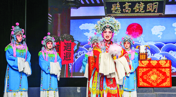 ▲3月31日,闻喜县蒲剧团在夏县裴介镇四辛庄村举办的“三月三”庙会上,为群众表演《明公断》剧目。