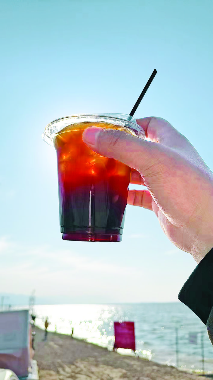 说话间,来了几个女孩子,看她们喜欢喝咖啡,孙博文便与其聊了起来,由于相谈甚欢,他爽快地为她们打了折。咖啡拿到手后,这些女孩子就在盐湖边就着风景喝了起来,有一个女生觉得咖啡有些苦,孙博文直接拿出桂花糖浆给她加了进去,也没有另行收费。