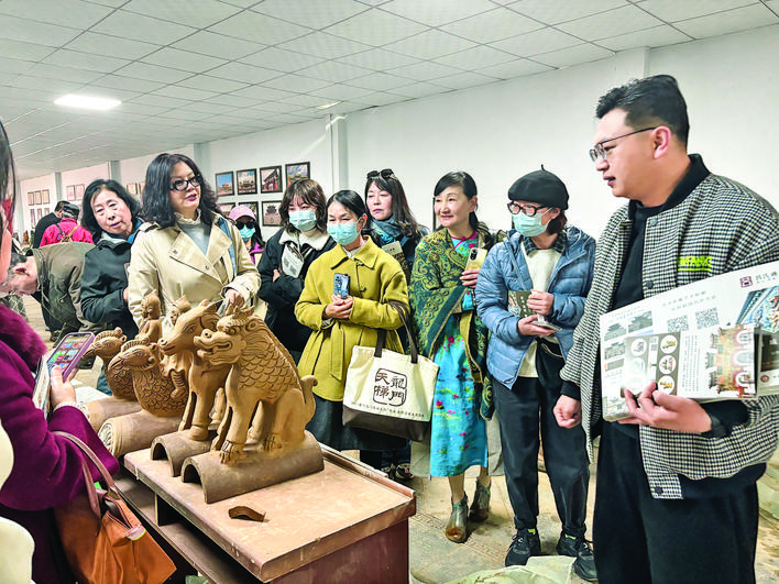 3月30日,作家们深入河津灰陶琉璃文化园、卜子夏祠、高禖庙、薛仁贵寒窑景区等,在古建名胜中感受岁月的馈赠;精美的琉璃文创产品让大家惊叹。美国《华府新闻日报》专栏作家孟悟此次受邀来到运城,她说:“来之前就对这里充满期待,根据以往的印象写了《隔海两河津》发表在我们的报刊上。非常幸运来到山西、来到运城河津,在这里短短几天却有许多美丽的收获,这里的山和水,还有这片土地上的人,都让我印象深刻。”