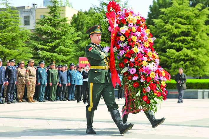 ▲敬献花篮 记者 张国平 摄