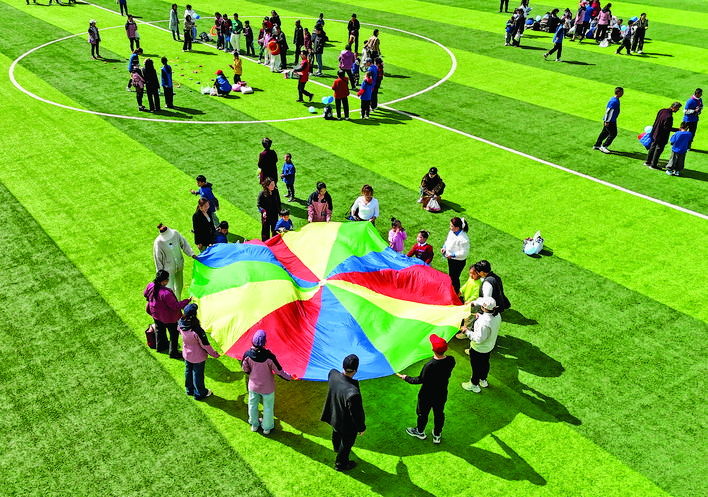 上午9时,和煦的阳光洒满绿茵场,数百只蓝色气球随风摇曳,前来参加活动的家长和孩子在腕间系上了蓝丝带。现场,蓝丝带与蓝气球相映成趣,勾勒出一幅充满希望与温情的春日画卷。