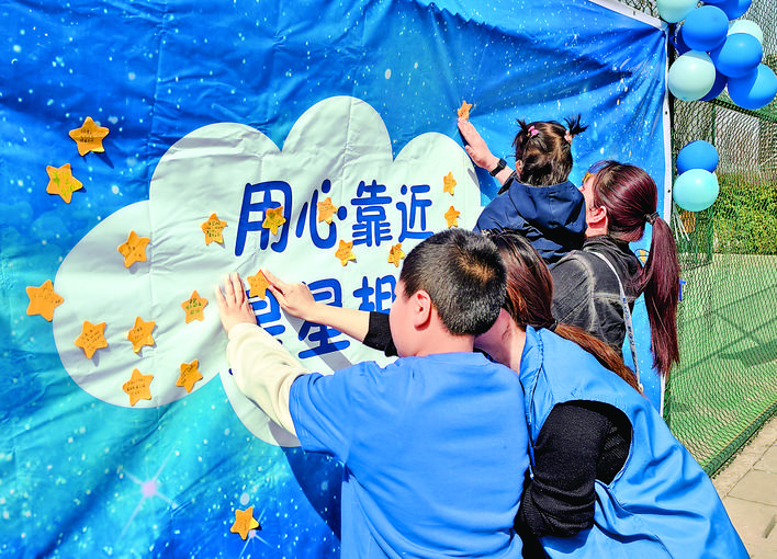 “愿宝宝健康成长,进步神速”“愿小星星们健康、快乐”“明天更美好”……4月2日,中心城区禹都公园足球场内的星空背景布上贴满了心愿便利贴,上面记录的是孤独症儿童家长对孩子最纯粹、最美好的祝愿。