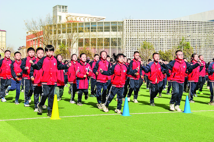 “考虑到三、四节课对学生精力的较高需求,上午大课间主要以各种操类活动为主,组织广播体操、啦啦操、韵律操等项目;下午大课间则以跑动类项目为主,科学设计了U型跑、环形跑等,让每个孩子都能充分动起来,在跃动间成功激活多巴胺分泌,提高身体素质,锻炼坚韧不拔的能力。”副校长杜新芳说。