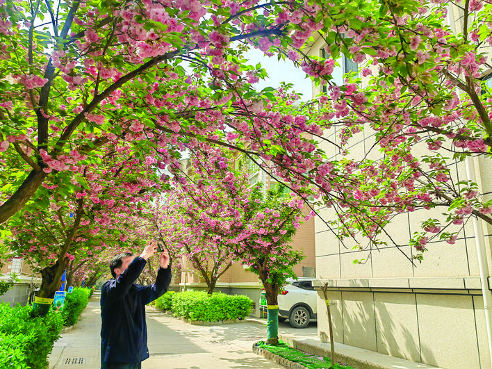 如今该小区的5条樱花通道已成为深受居民喜爱的打卡点,还吸引了不少其他小区的居民前来观赏拍照。