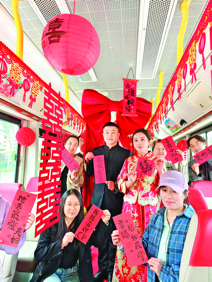 “结婚坐公交,解锁新体验。”