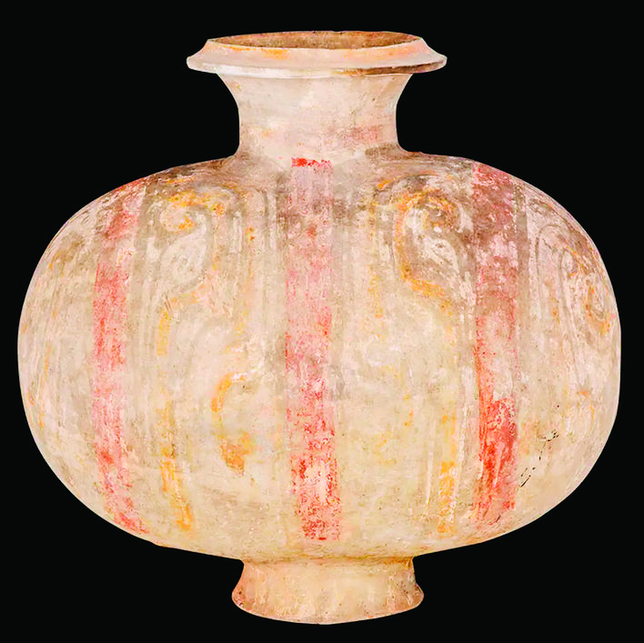这件彩绘茧型陶壶是汉代艺术精神的典型代表。它体现了汉代艺术追求气势恢宏、内涵丰富的特点。在独特的造型中,在流云溢彩间,我们得以窥见大汉气象,感受那个时代独特的审美追求与文化魅力。