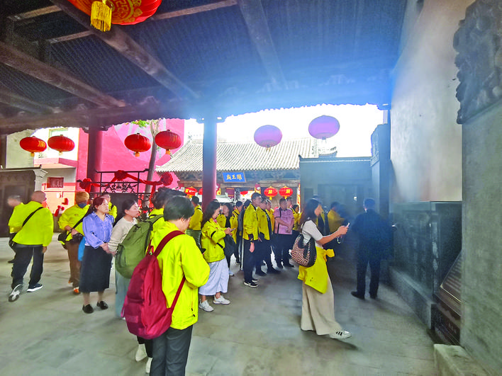 春日,千年祖庙,微风轻拂,繁花似锦。考察团成员在讲解员的引导解说下,欣赏着木雕、砖雕、石雕、铸铁、铸铜、琉璃等,领略气势磅礴的古建魅力,感叹中国古代匠师的巧夺天工;聆听忠义仁勇的关公故事,在读好书、说好话、行好事、做好人“关帝圣训”中感悟立德树人、诚实守信的高尚品质。